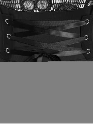 Robes Décontractées > Robe midi évasée en dentelle gothique à motif tête de mort croisée