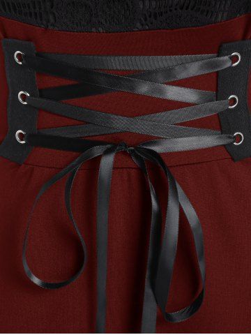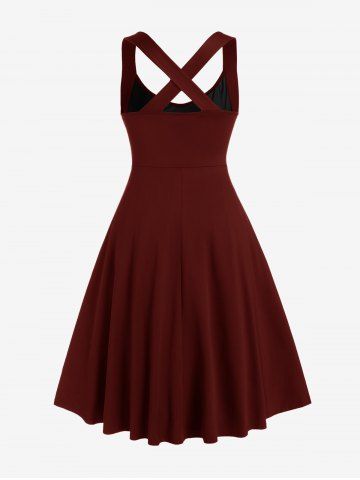 Robe midi évasée en dentelle gothique à motif tête de mort croisée - Rouge - Rouge