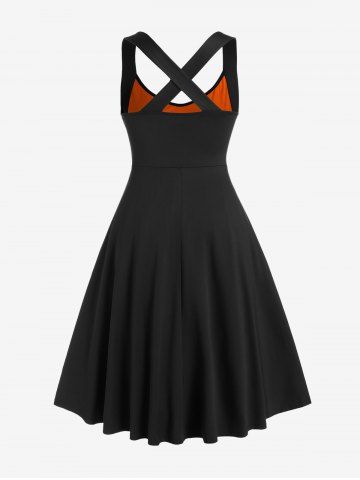 Robes Décontractées > Robe midi évasée en dentelle gothique à motif tête de mort croisée