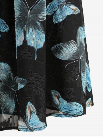 Robes Décontractées > Robe Pentacle Papillon Imprimé Zippée de Grande Taille à Volants