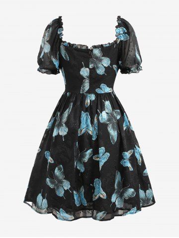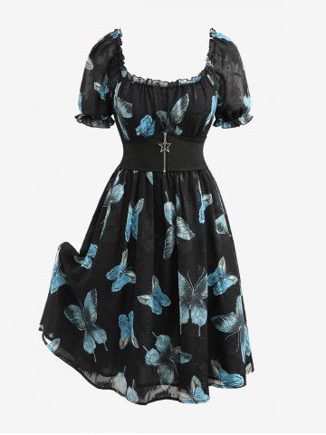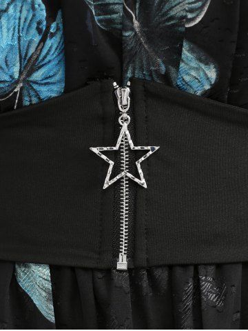 Robe Pentacle Papillon Imprimé Zippée de Grande Taille à Volants - Noir - Noir