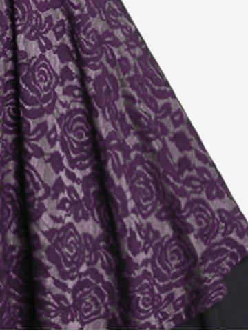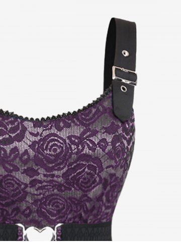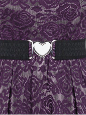Robes Décontractées > Robe Vintage Ajustée Evasée Ceinturée Bouclée Fleurie en Dentelle à Bretelle Grande Taille