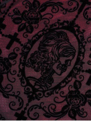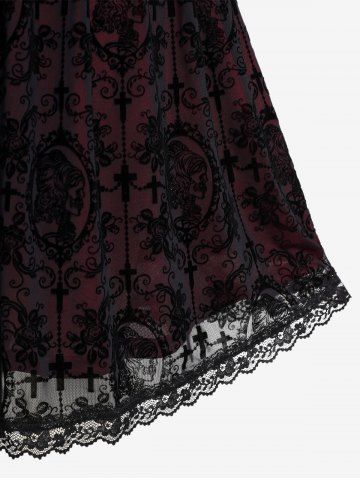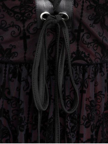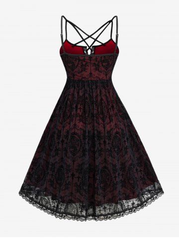 Robe vintage gothique à lacets et œillets, grande taille, imprimée, en maille croisée, pour Halloween. - Rouge - Rouge