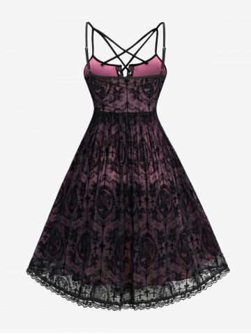 Robe vintage gothique à lacets et œillets, grande taille, imprimée, en maille croisée, pour Halloween. - Rose Clair - Rose Léger