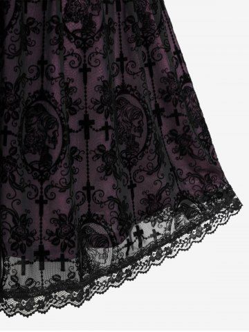 Robes Décontractées > Robe vintage gothique à lacets et œillets, grande taille, imprimée, en maille croisée, pour Halloween.