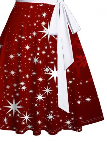 Mini Robe Ceinturée Flocon de Neige et Etoile Imprimés - Rouge Foncé - Xxxl | Us 16