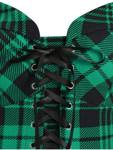 Robe à Bretelle Bouclée à Carreaux Imprimée à Lacets - Multi-a - S
