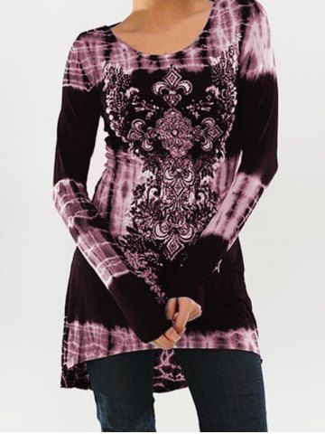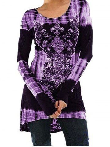 Robe Branchée Imprimée à Manches Longues - Pourpre - Pourpre