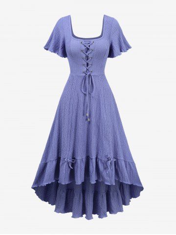 Robes Décontractées> Robe à volants, lacets, œillets, plissée et cintrée asymétrique