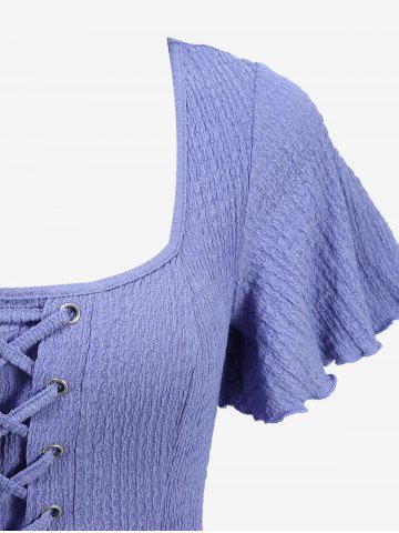 Robe à volants, lacets, œillets, plissée et cintrée asymétrique - Pourpre - Pourpre