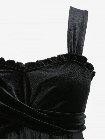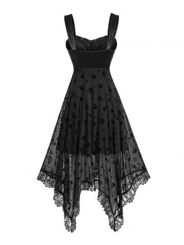 Robe asymétrique en velours à motif tête de mort et étoiles - Noir - Noir