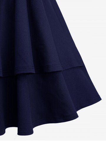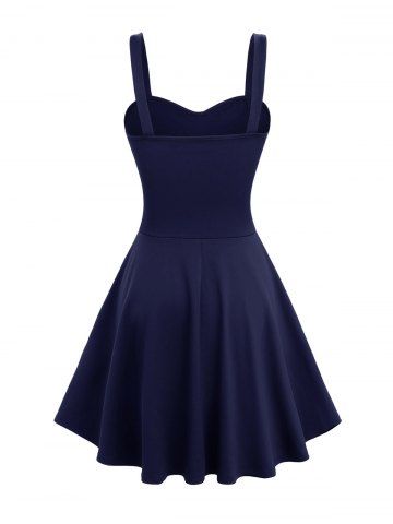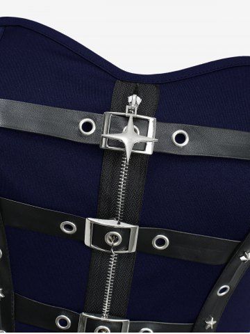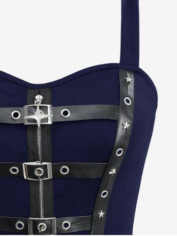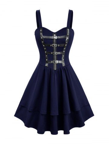 Robe débardeur trapèze superposée avec fermeture éclair en étoile, bretelles en PU, œillets et boucle - Bleu Profond - S