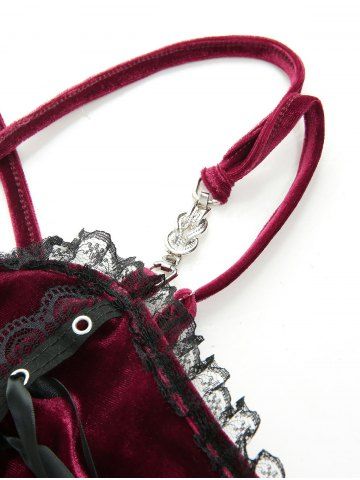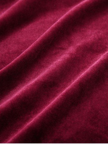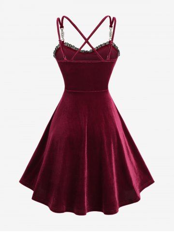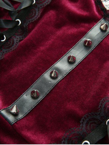 Robe trapèze en velours à bretelles croisées, lacées et rivetées, avec bretelles en PU et rivets - Rouge Foncé - L