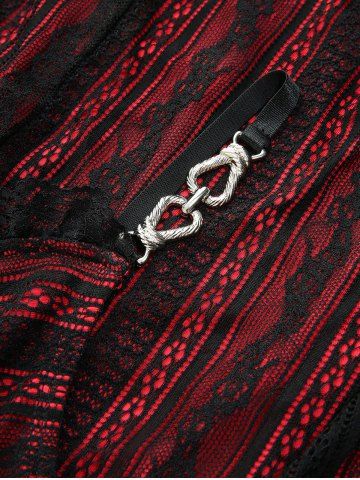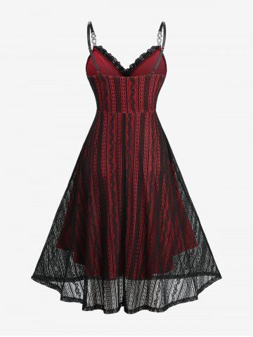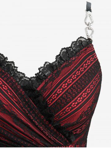 Robe débardeur trapèze à volants et dentelle superposée (bretelles réglables) - Rouge - Rouge