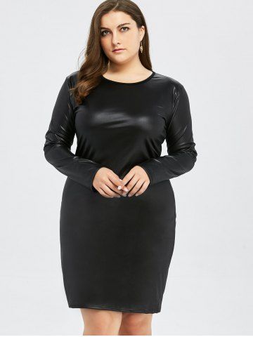 Robe Moulante Grande Taille en Similicuir - Noir - Noir