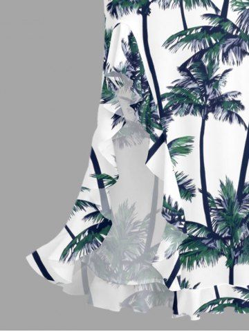 Coconut Tree Print Hawaii Ruffles Split Dress - Bleu Profond - S
