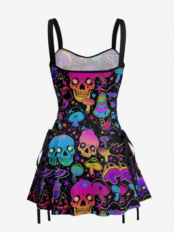 Robes Graphiques> Colorful Ombre Skulls Mushroom Print Hawaii Lace Up A Line Dress
