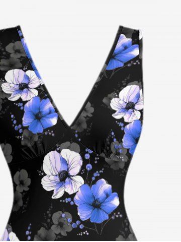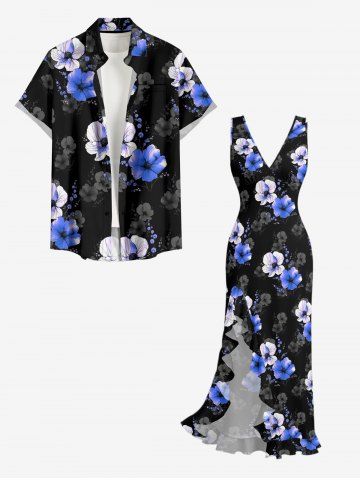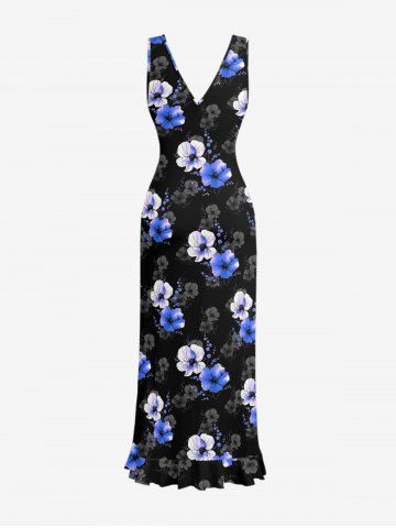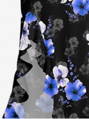 Robes Graphiques> Flowers Print Hawaii Ruffles Split Surplice Dress