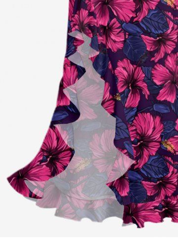 Robes Graphiques> Hibiscus Flower Print Hawaii Ruffles Split Surplice Dress