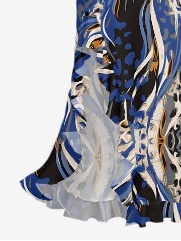 Leopard Print Hawaii Ruffles Split Dress - Bleu - Bleu
