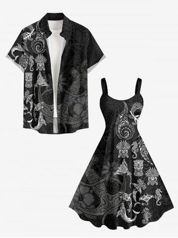 Masque grande taille Poisson Papillon Hippocampe Imprimé ethnique Robe débardeur hawaïenne - Noir - Noir