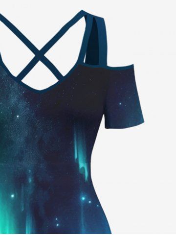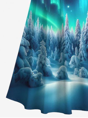 Maxi Robe Croisée 3D Forêt Neige et Lumière Imprimés à Epaule Dénudée de Grande Taille à Paillettes - Multi-a - 6x