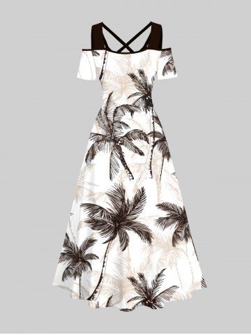 Robes Graphiques > Maxi Robe Croisée Arbre de Noix de Coco Imprimé à Epaule Dénudée de Grande Taille