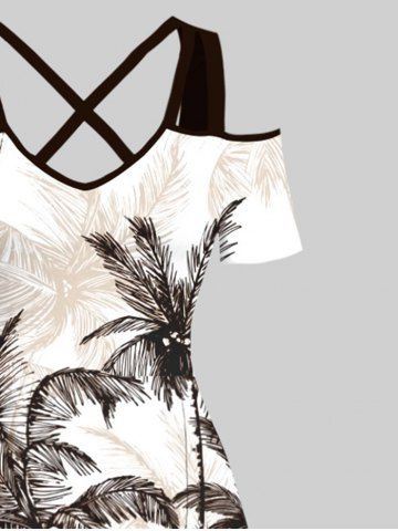 Maxi Robe Croisée Arbre de Noix de Coco Imprimé à Epaule Dénudée de Grande Taille - Multi-a - 6x