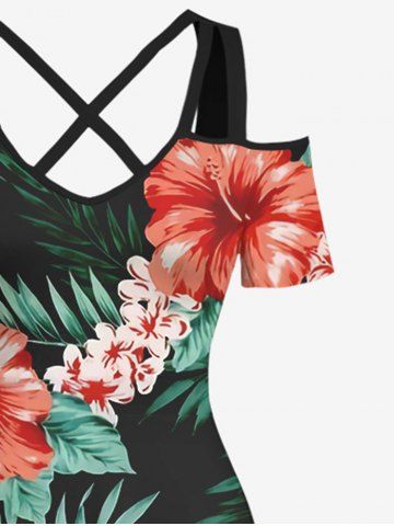 Maxi Robe D'Entraînement Croisée Fleur Feuille Tropicale Imprimée à Epaule Dénudée de Grande Taille - Multi-a - 6x