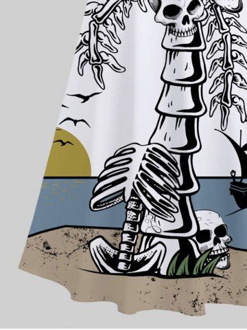 Maxi Robe D'Eté Ligne A Cocotier Crâne Imprimés à Epaule Dénudée de Grande Taille - Blanc - Blanc