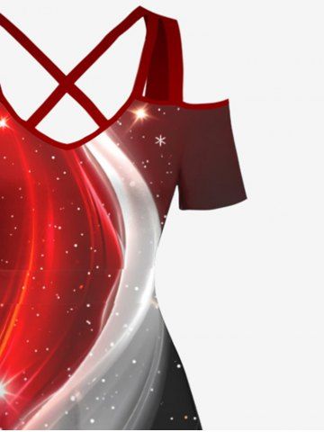 Robes Graphiques > Maxi Robe Décontractée Brillante 3D Galaxie Imprimée en Blocs de Couleurs à Epaule Dénudée de Grande Taille à Paillettes