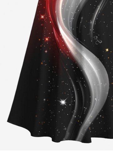 Maxi Robe Décontractée Brillante 3D Galaxie Imprimée en Blocs de Couleurs à Epaule Dénudée de Grande Taille à Paillettes - Noir - Noir