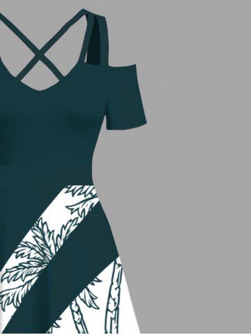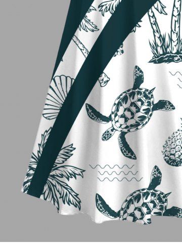 Maxi Robe Hawaïen à Epaule Dénudée Cocotier et Ananas Imprimés de Grande Taille - Vert Profond - M