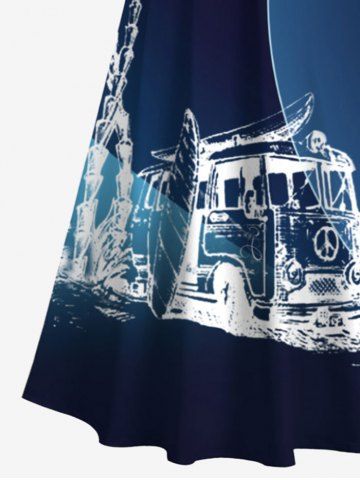 Maxi Robe Hawaïen Croisée Arbre Noix de Coco et Palmier Imprimés à Epaule Dénudée Grande Taille - Bleu De Minuit - L