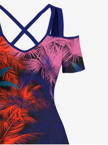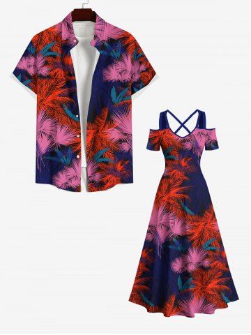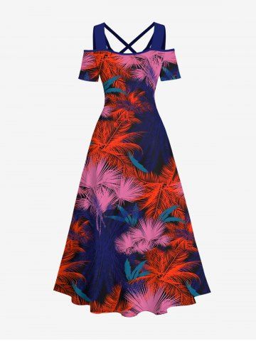 Robes Graphiques > Maxi Robe Hawaïen Ligne A Croisée Feuille Tropicale et Arbre de Noix de Coco Imprimés de Grande Taille