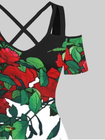 Maxi Robe Ligne A Croisée en Blocs de Couleurs Feuille Tropicale et Fleur Imprimés de Grande Taille - Multi-a - S