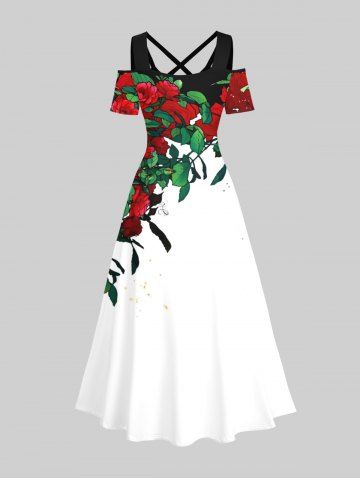 Maxi Robe Ligne A Croisée en Blocs de Couleurs Feuille Tropicale et Fleur Imprimés de Grande Taille - Multi-a - 1x