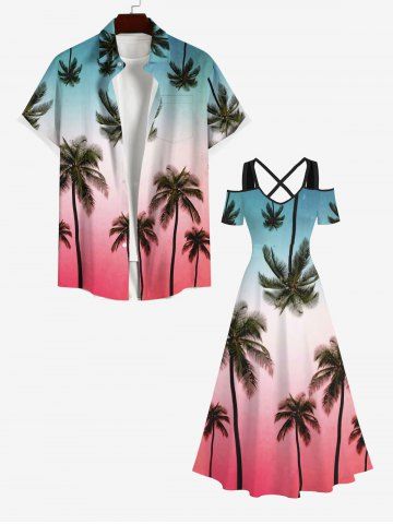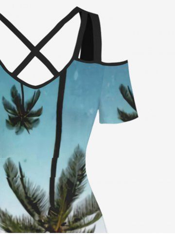 Maxi Robe Ligne A Croisée Ombrée Cocotier à Epaule Dénudée de Grande Taille - Multi-a - 1x