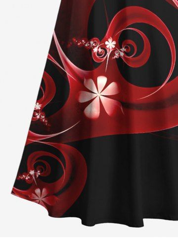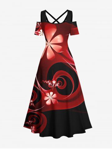 Maxi Robe Ligne A Croisée Ombrée Fleurie Imprimée de Grande Taille avec Ruban - Rouge Foncé - L