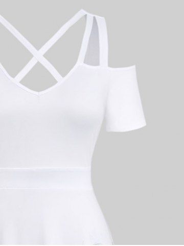 Maxi Robe Ligne A Croisée Tropicale et Arbre de Noix de Coco Imprimés à Epaule Dénudée de Grande Taille - Blanc - Blanc