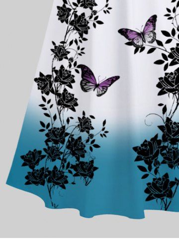 Robes Graphiques > Maxi Robe Ligne A Teintée Ombrée Feuille et Papillon Imprimés de Grande Taille