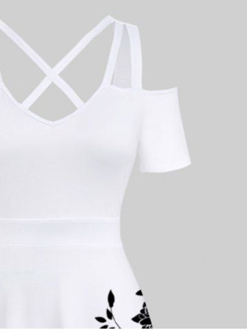 Maxi Robe Ligne A Teintée Ombrée Feuille et Papillon Imprimés de Grande Taille - Blanc - Blanc