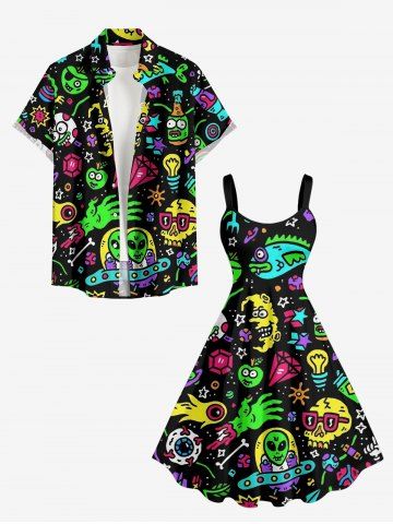 Plus Size Cartoon Graphic Print Hawaii A Line Dress - Noir - Noir