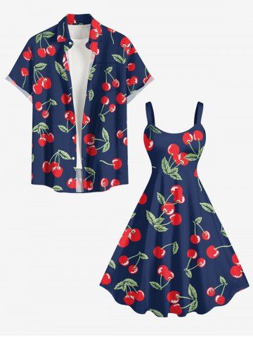 Plus Size Cherry Print Hawaii A Line Dress - Cadetblue - L