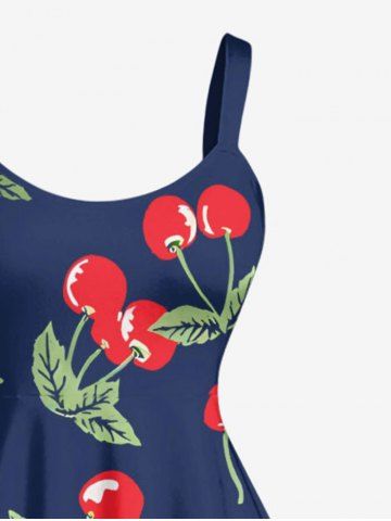 Plus Size Cherry Print Hawaii A Line Dress - Cadetblue - 6x