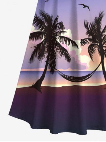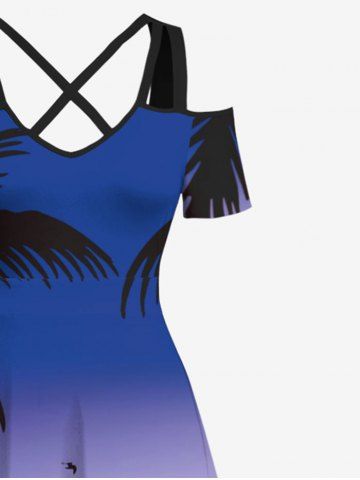 Robes Graphiques > Plus Size Coconut Tree Bird Cloud Hammock Print Cold Shoulder Crisscross Hawaii Maxi Dress