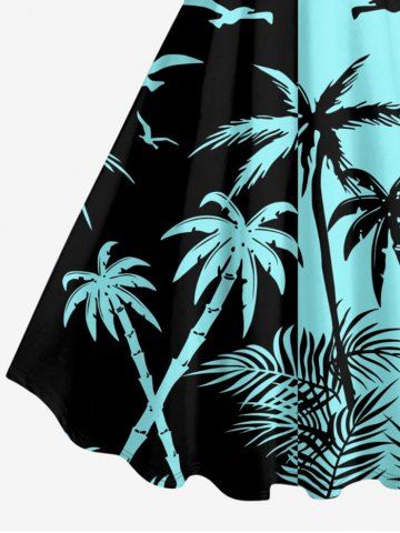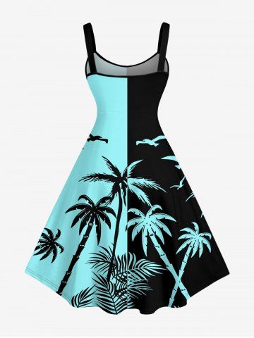 Plus Size Coconut Tree Bird Colorblock Print Hawaii Tank Dress - Turquoise - Turquoise