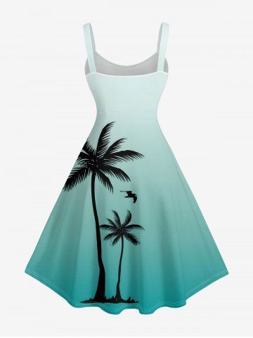Plus Size Coconut Tree Bird Ombre Print Hawaii Tank Dress - Émeraude - M