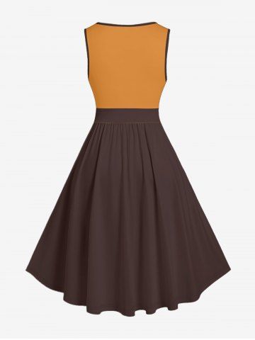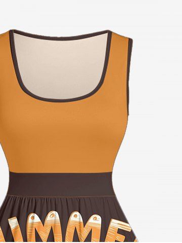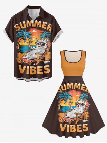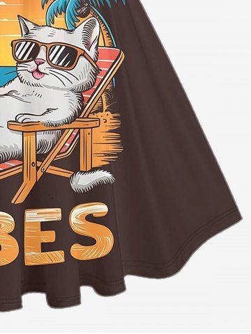 Plus Size Coconut Tree Cat Seascape Letter Print Hawaii Vintage Swing A Line Dress - Brun - Brun