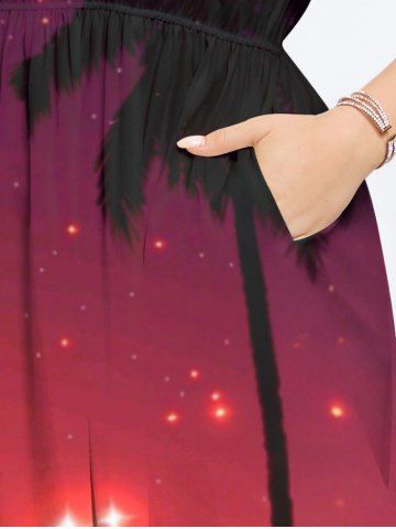 Plus Size Coconut Tree Galaxy Print Split Hawaii Midi Dress - Rouge Foncé - 5x